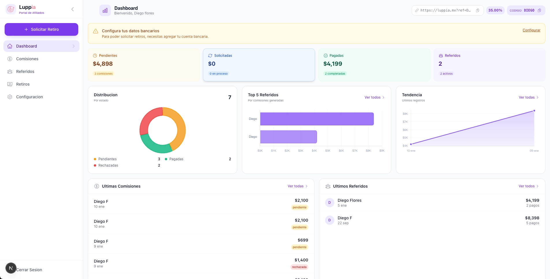 Visualiza tus referidos, conversiones y ganancias en tiempo real.